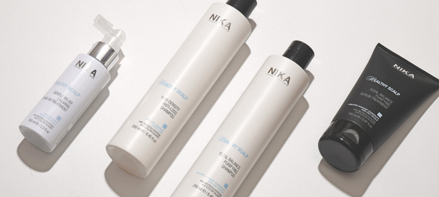 La linea curativa di Nika dedicata al trattamento e al benessere della cute. Un sistema completo di trattamenti che permette di ristabilire il naturale equilibrio del cuoio capelluto riportando la cute e i capelli alla loro naturale bellezza.